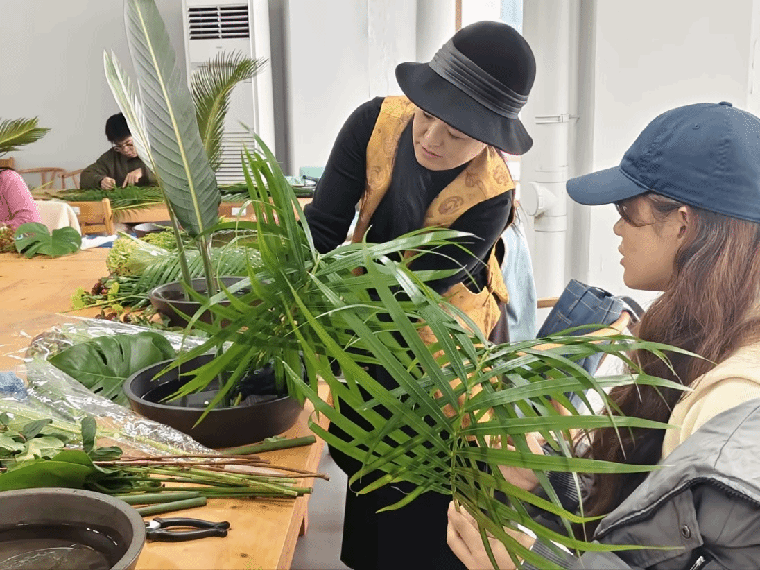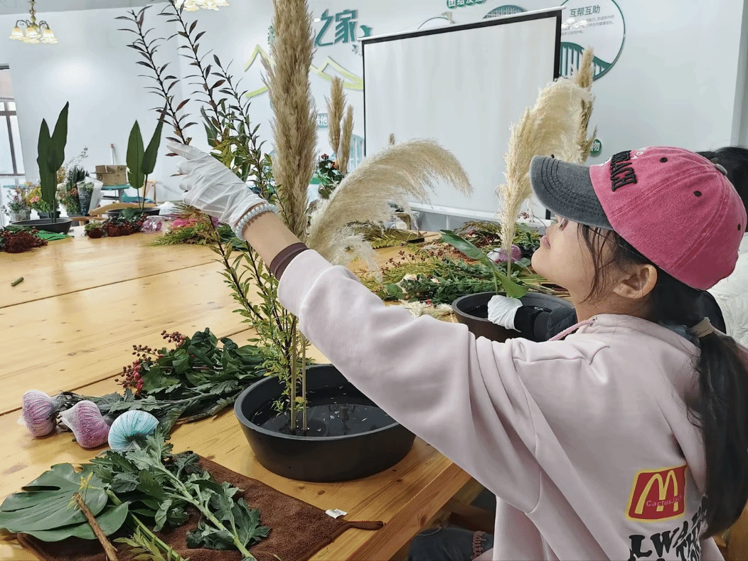 活动尾声,参与活动的教师表示:“中式盆花不仅是技艺的传承,更是对‘天人合一’美学观的实践。本次沙龙选择秋季主题,既是应时应景,也希望师生通过草木感知季节流转,将传统意境融入当代设计语言。” 从观察花材特性到构思空间布局,从修剪枝叶到完成创作,这场持续三小时的沙龙,不仅让参与者掌握了盆花造型技巧,更在一草一木的对话中,触摸到了中式美学的温度。