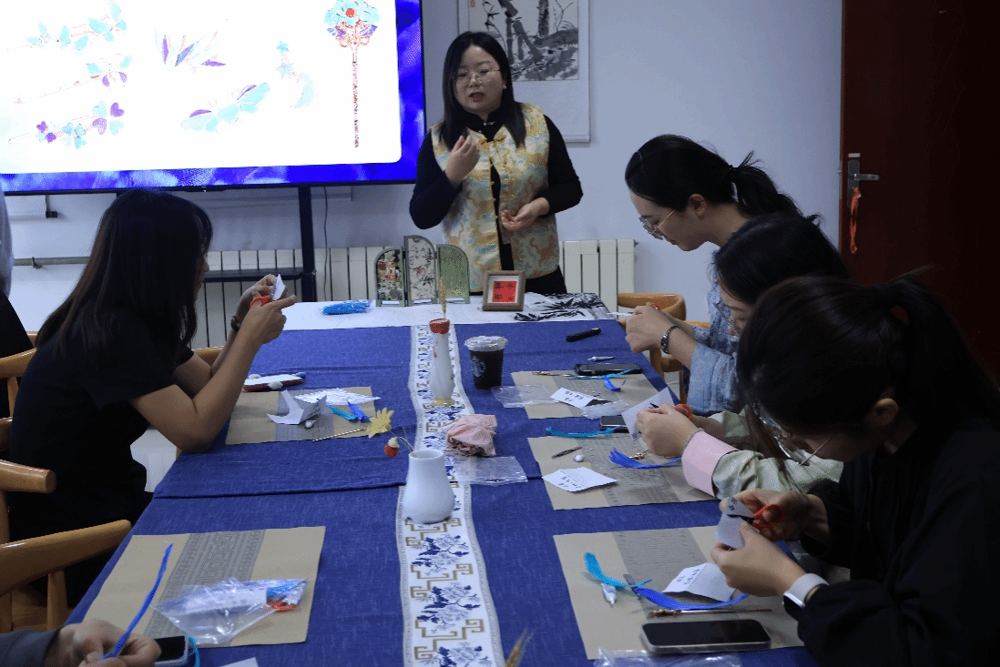 9月19日下午,设计艺术与传媒学院于图书馆茶艺室举办“指尖承艺·点翠生香”点翠发簪制作主题非遗沙龙。活动特邀胶州市图书馆少海书院王老师担任主讲,吸引学院师生30余人参与,以一场沉浸式文化体验,共赴传统工艺的对话之旅。
