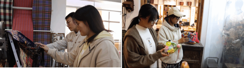 图3 学生用指尖感受非遗工艺(左侧民间刺绣、右侧布老虎)