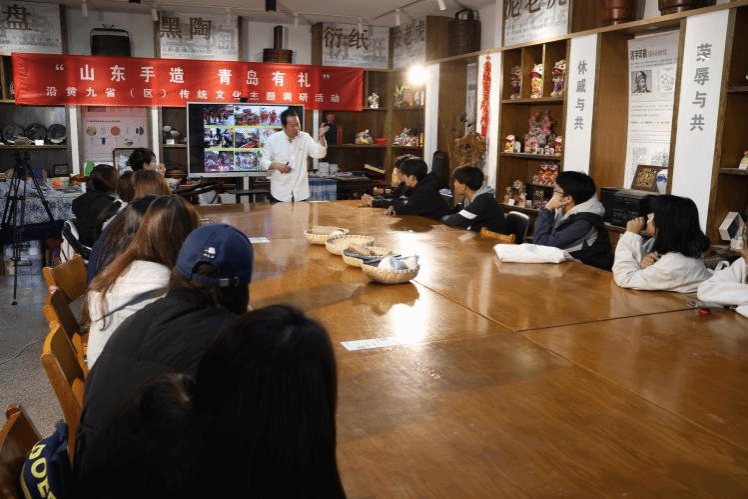 在随后的座谈交流环节,侍教授通过一张张珍贵的田野调查照片,将课堂的边界无限延伸。他分享了今年盛夏带领团队以“沿着黄河遇见海”为主题的沿黄九省(区)传统文化调研活动,他们深入青海、甘肃、宁夏等地,考察“青海刺绣”、“柳湾彩陶”等非遗项目的动人故事。当屏幕上展现出绣娘手中五彩斑斓的绣线如何化作太阳的纹样,或是彩陶艺人如何在彩绘之上调和出大地的色谱,学生们发出阵阵惊叹。这不仅是对精美实物的展示,更是一部“行走”的非遗见闻录。受此感染,来自山东潍坊的学生也主动分享了家乡“杨家埠木版年画”的印制趣事。思想的火花在交流中碰撞,非遗从课本上的名词,变成了每个人心中鲜活而亲切的文化记忆。
